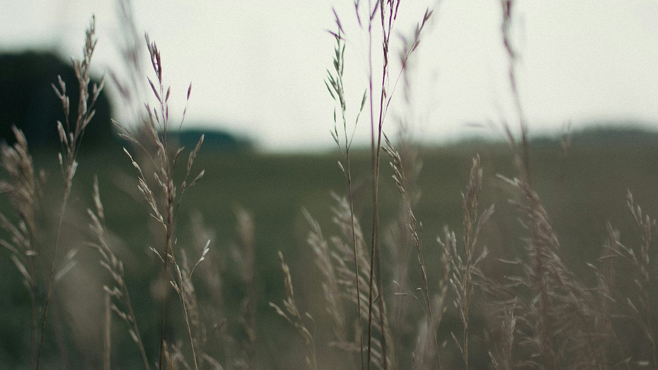 This wallpaper features a serene image of a field of tall grass gently swaying under a vast, open sky. Perfect for a calming desktop background.