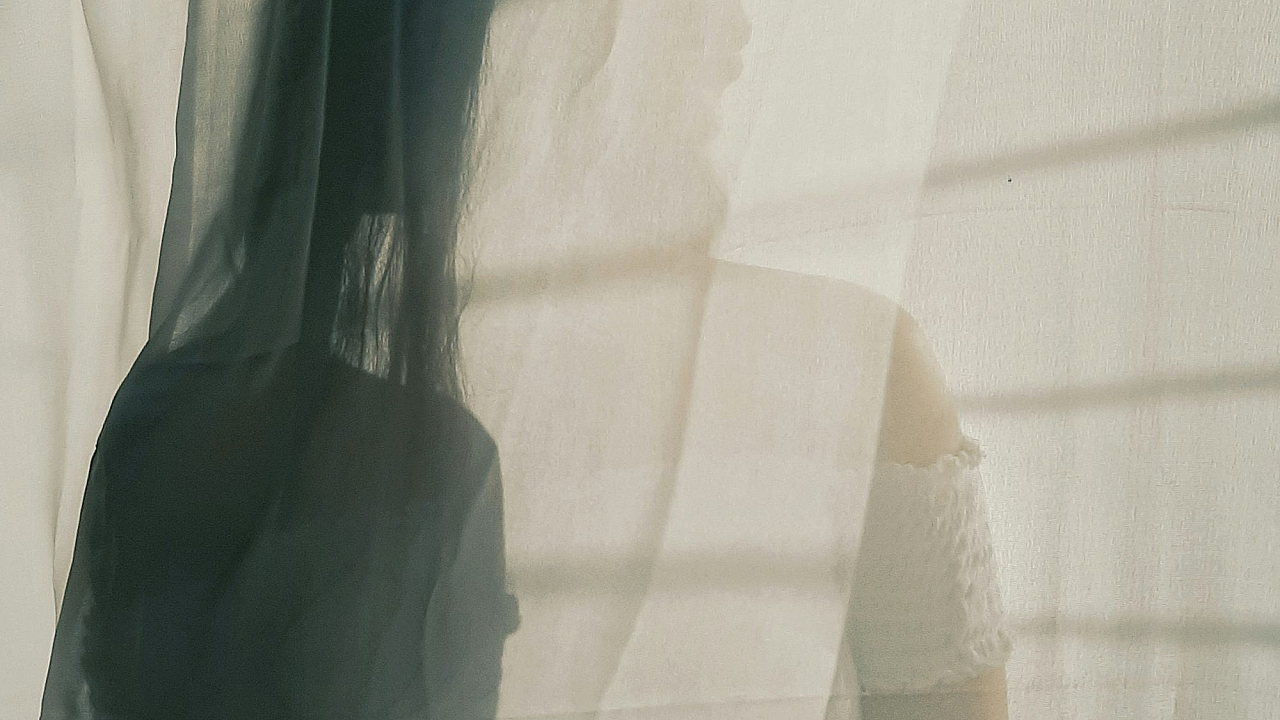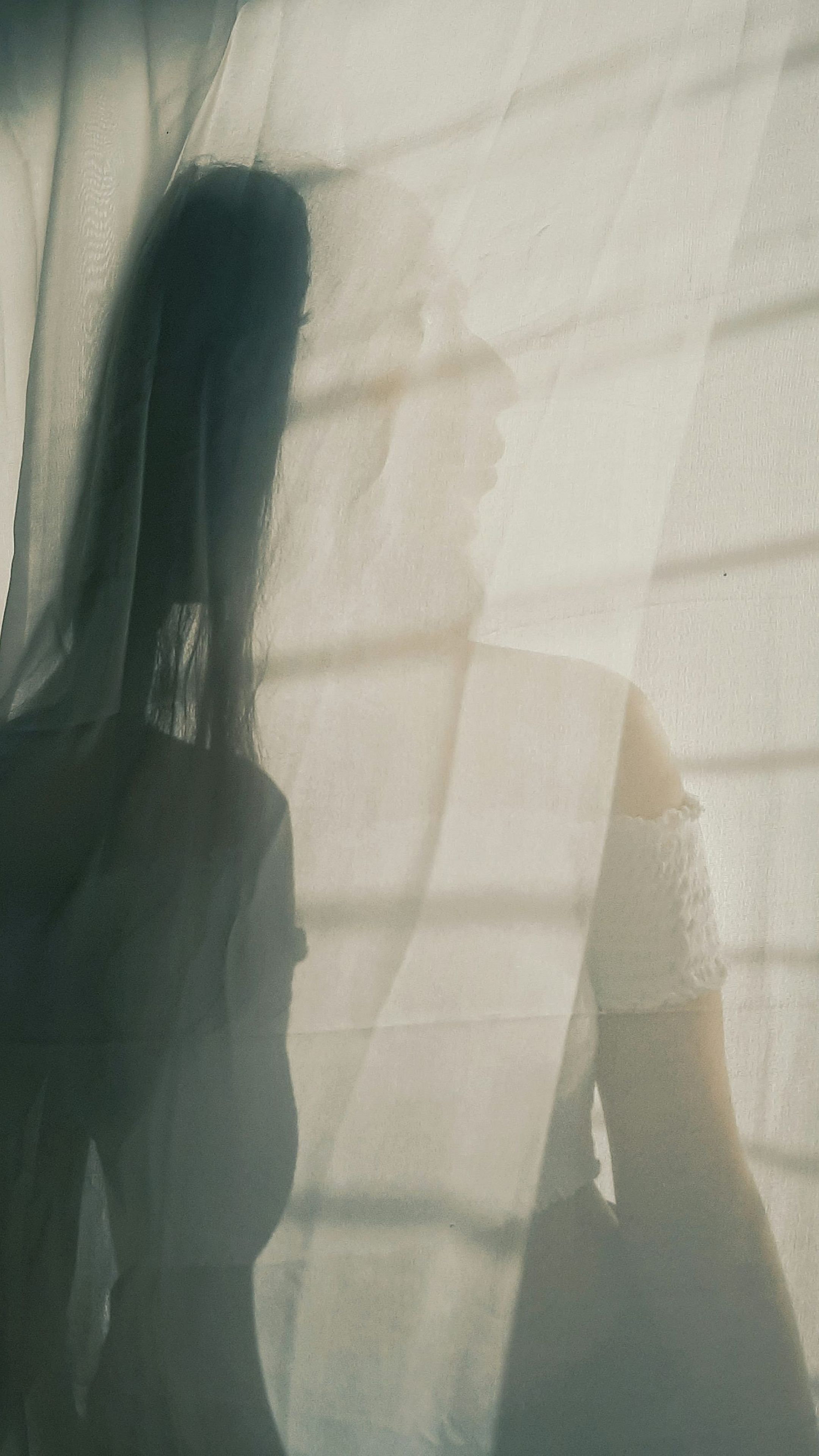 woman, sheer curtain, wallpaper, silhouette, feminine, elegant, mystery, abstract, light, shadow