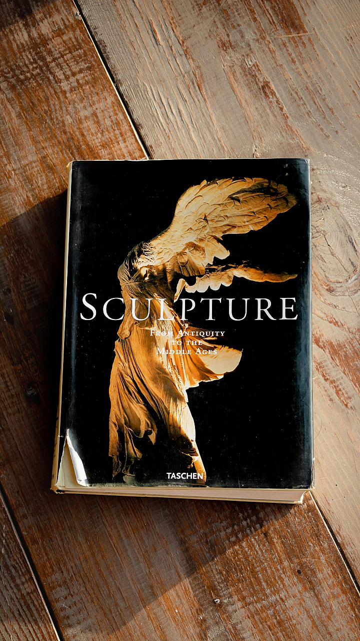 brown and black stone on black book