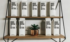 Wallpaper White and Black Labeled Boxes on Brown Wooden Rack