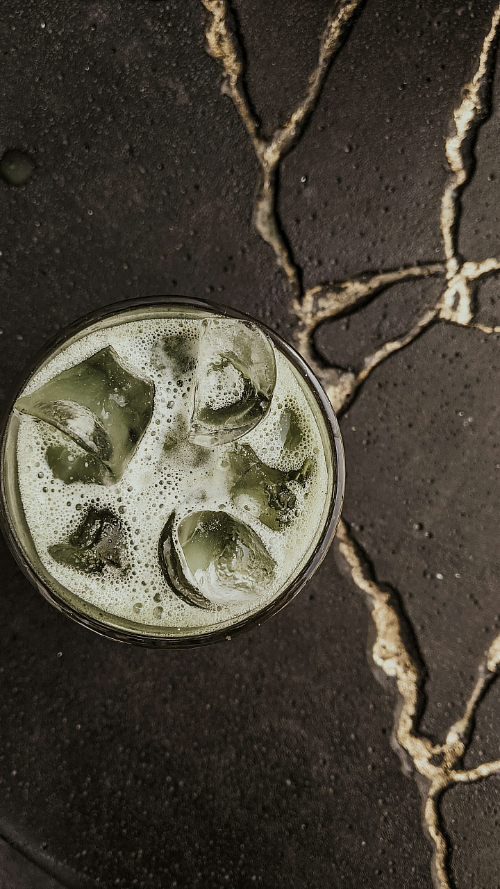 A crisp, clean wallpaper featuring a clear drinking glass filled with a vibrant green liquid. Perfect for a minimalist aesthetic.