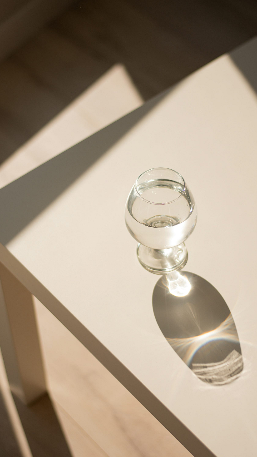 clear glass ball, white wooden table, glass sphere, transparent ball, reflection, minimalism, simple background, clean aesthetic, wallpaper, desktop wallpaper