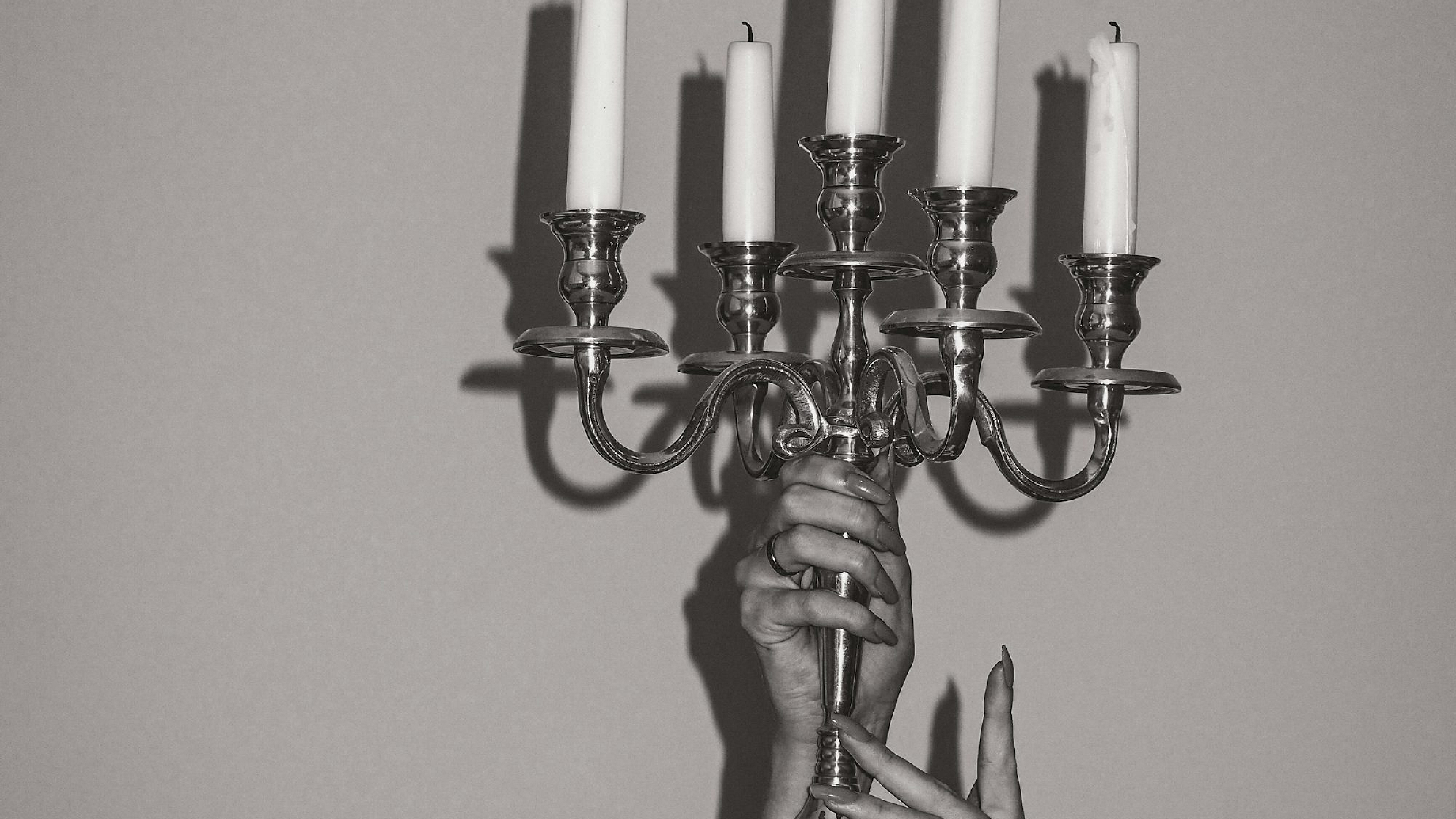 gold candle holder, white candles, candlelight, luxury, elegant, home decor, wallpaper, background, candles, still life
