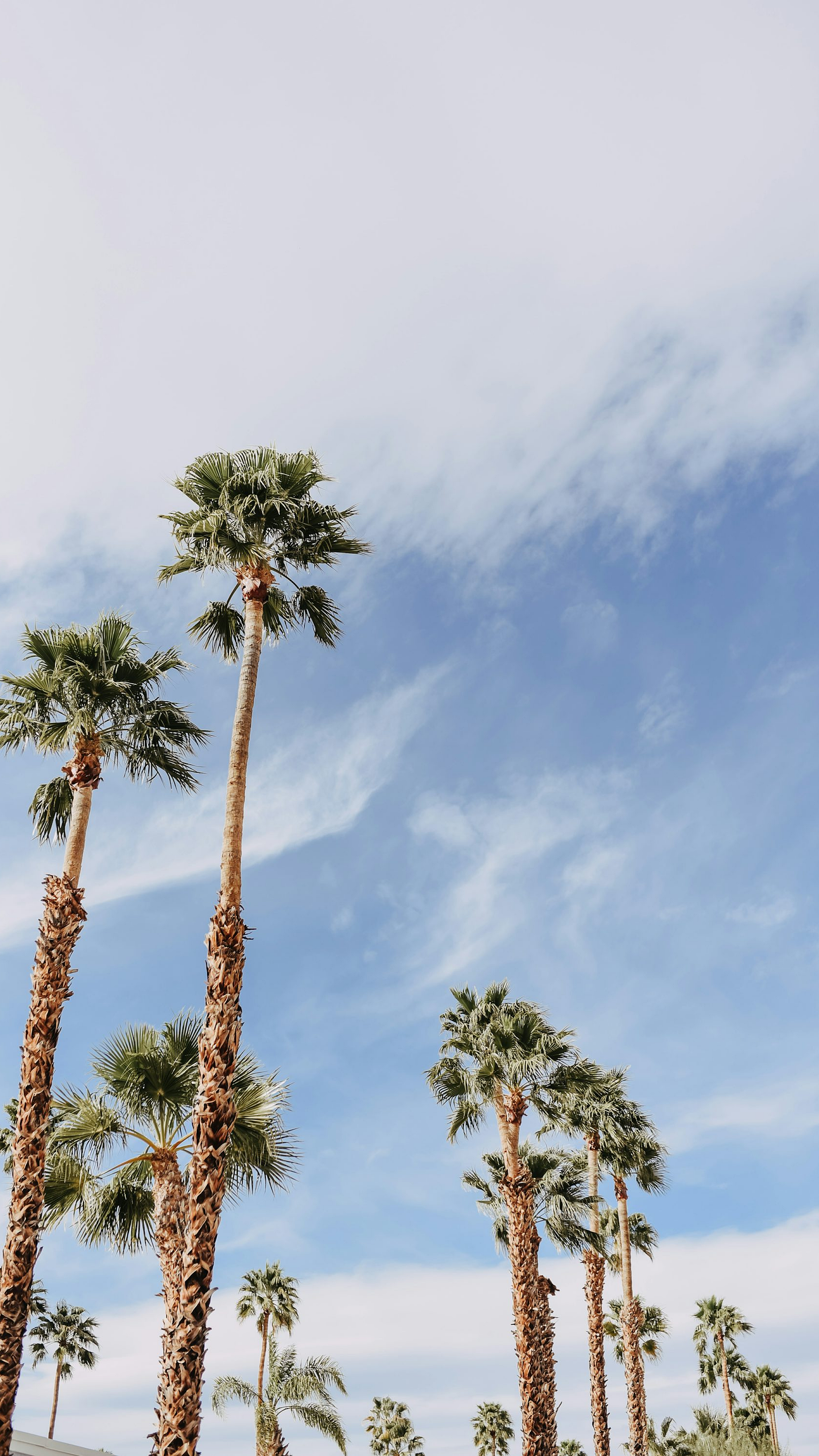 Keywords: palm tree wallpaper, green palm tree, brown palm tree, white clouds, tropical wallpaper, nature wallpaper, landscape wallpaper, palm tree background, summer wallpaper, beach wallpaper