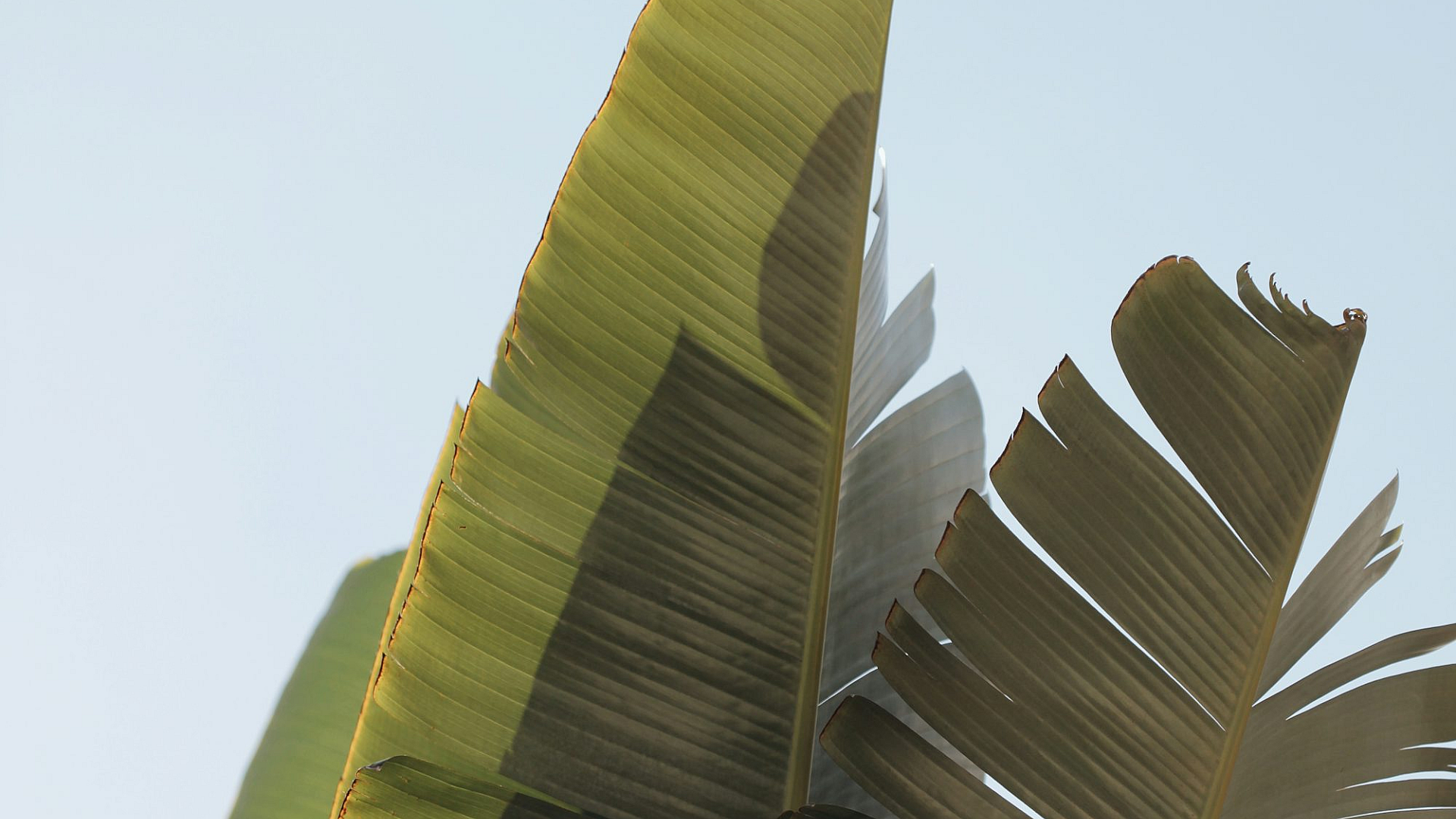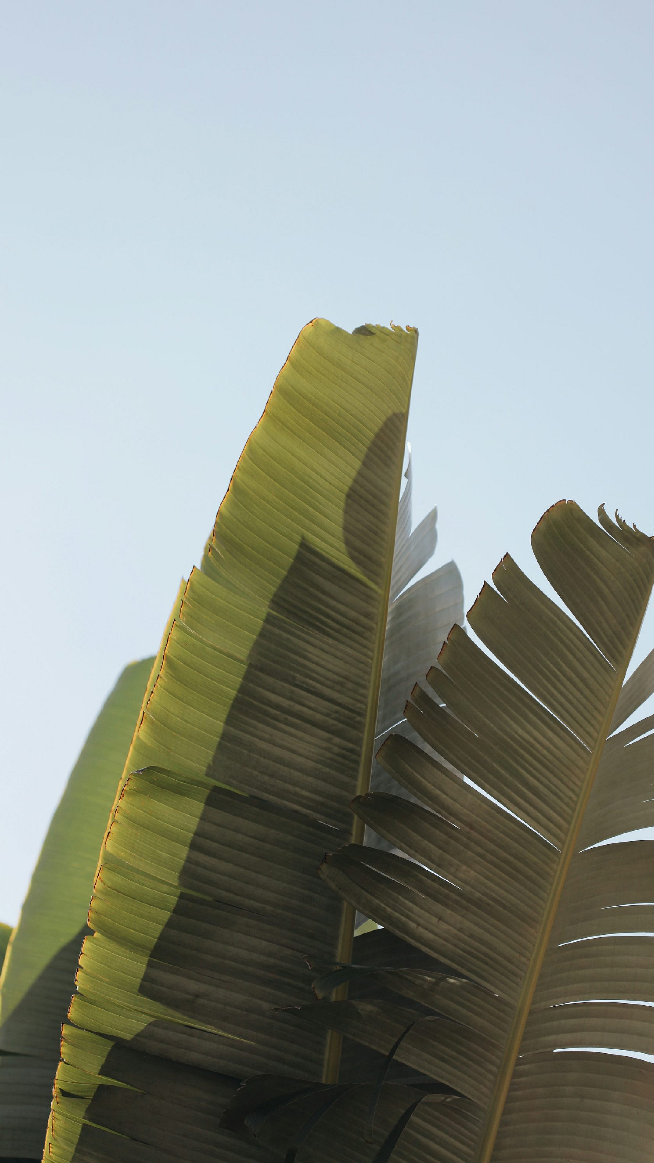 A vibrant wallpaper featuring a lush green banana leaf bathed in the warm light of day. Perfect for a tranquil and natural aesthetic.