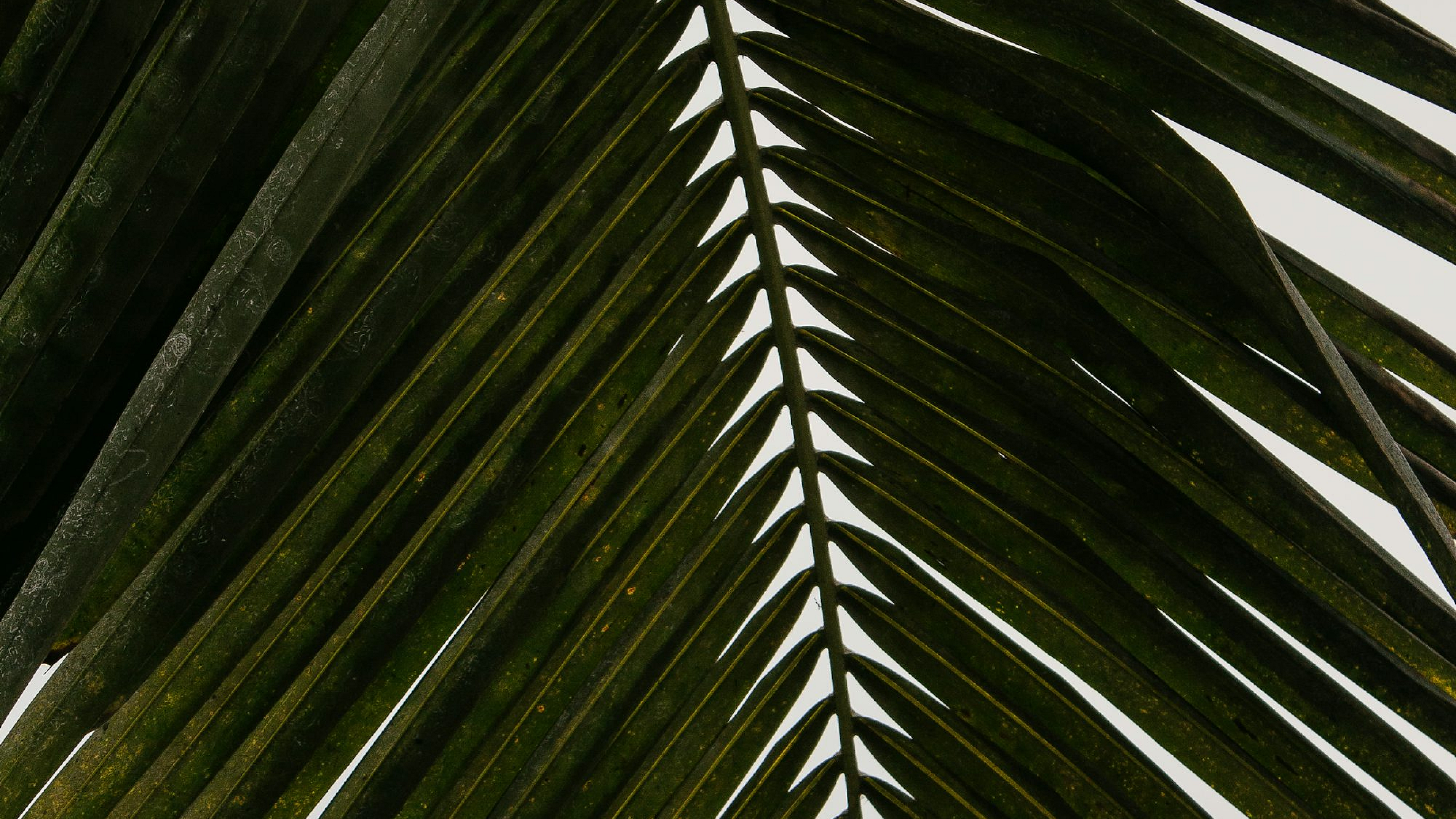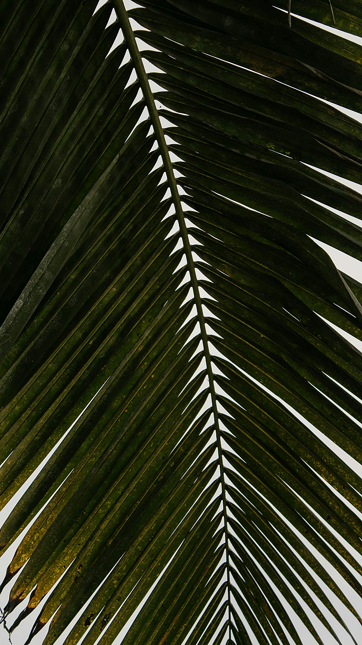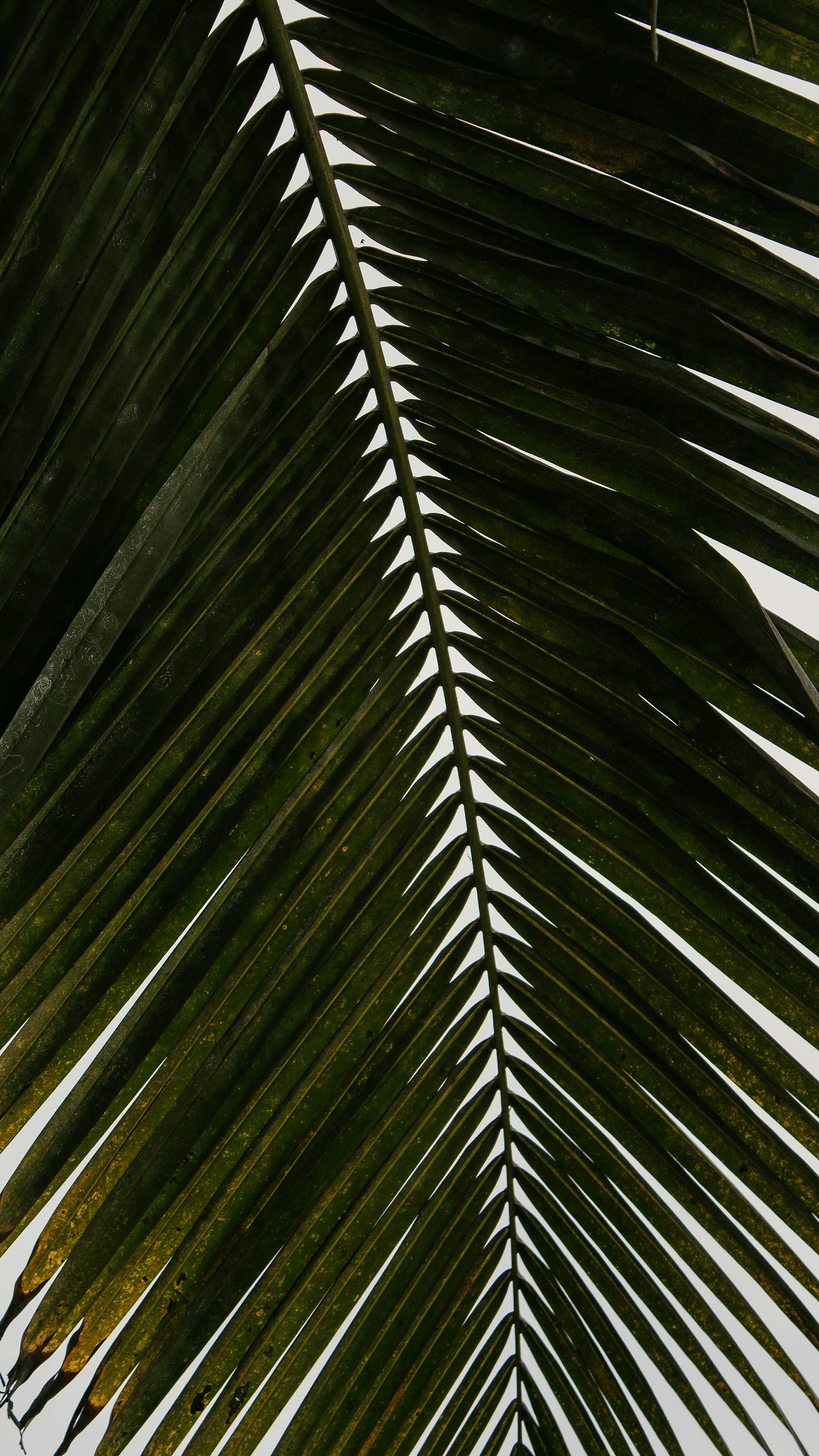 This stunning wallpaper features a vibrant green palm tree basking in the warm daytime sun. Perfect for a tropical escape feel.
