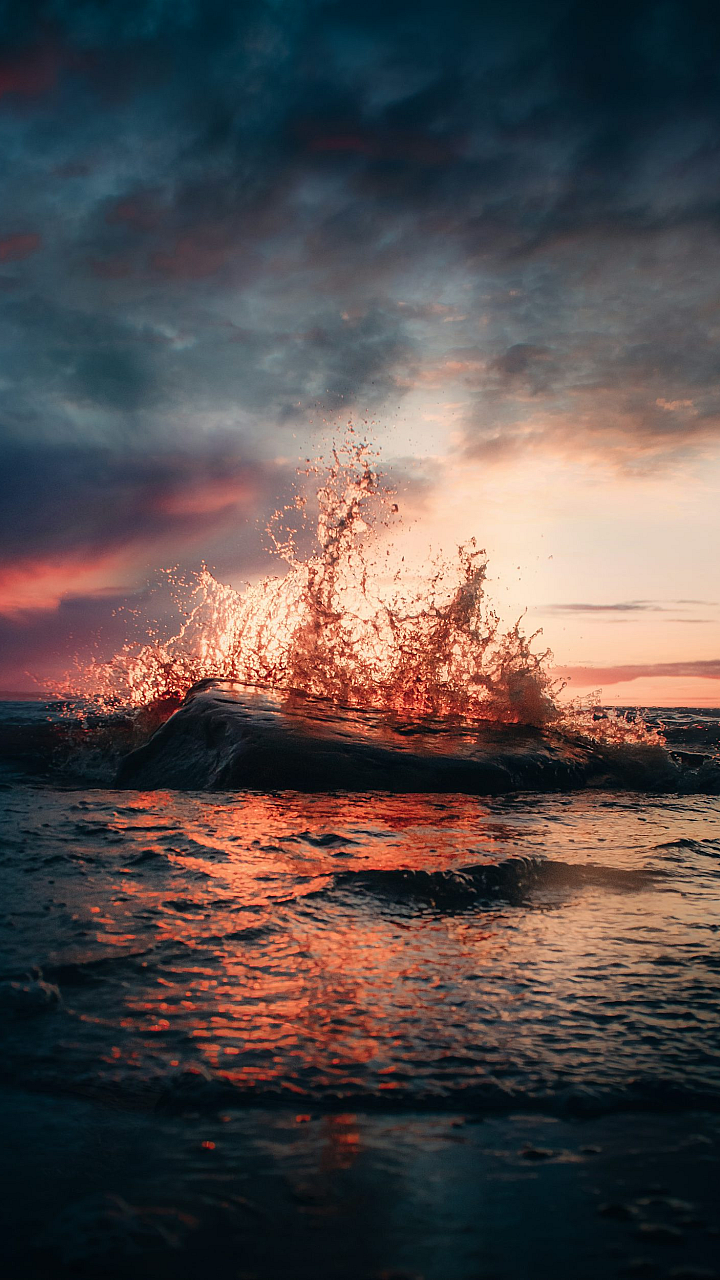 A breathtaking wallpaper featuring a leafless tree silhouetted against a vibrant sunset over a tranquil shore. Perfect for a calming desktop background.