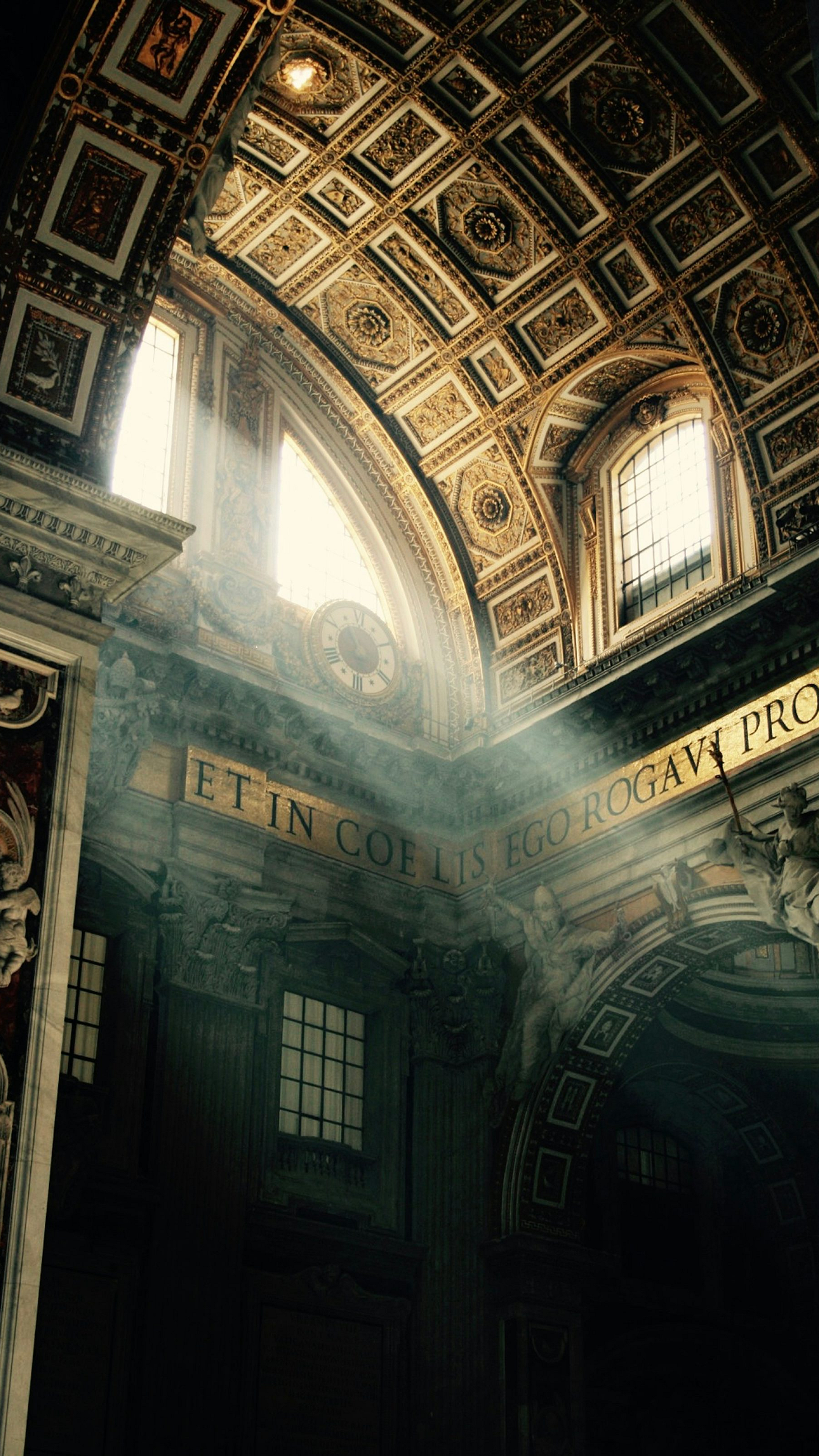This wallpaper features a stunning photograph of the interior of a black structure, emphasizing lines, shadows, and architectural details for a dramatic and moody aesthetic.