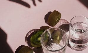 Wallpaper Two Clear Drinking Glasses with Kiwi Fruits