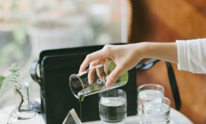 Wallpaper Person Pouring Green Liquid on Ice Cream