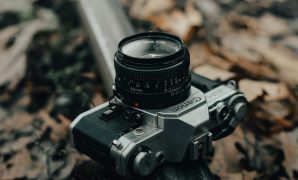 Wallpaper Black and Gray Camera on Brown Dried Leaves