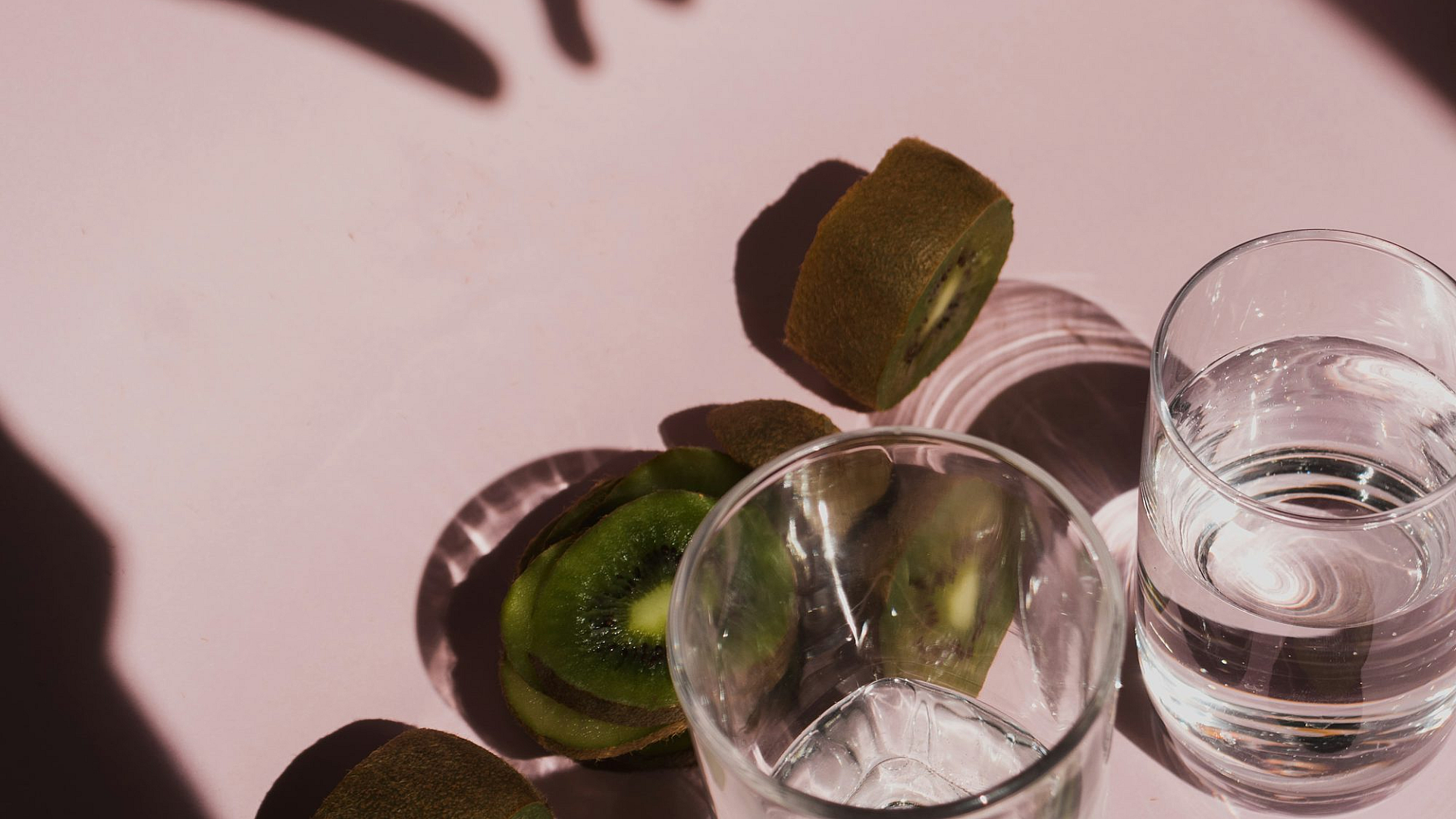 A refreshing wallpaper featuring two clear drinking glasses filled with vibrant kiwi fruits. Perfect for a clean and healthy aesthetic.