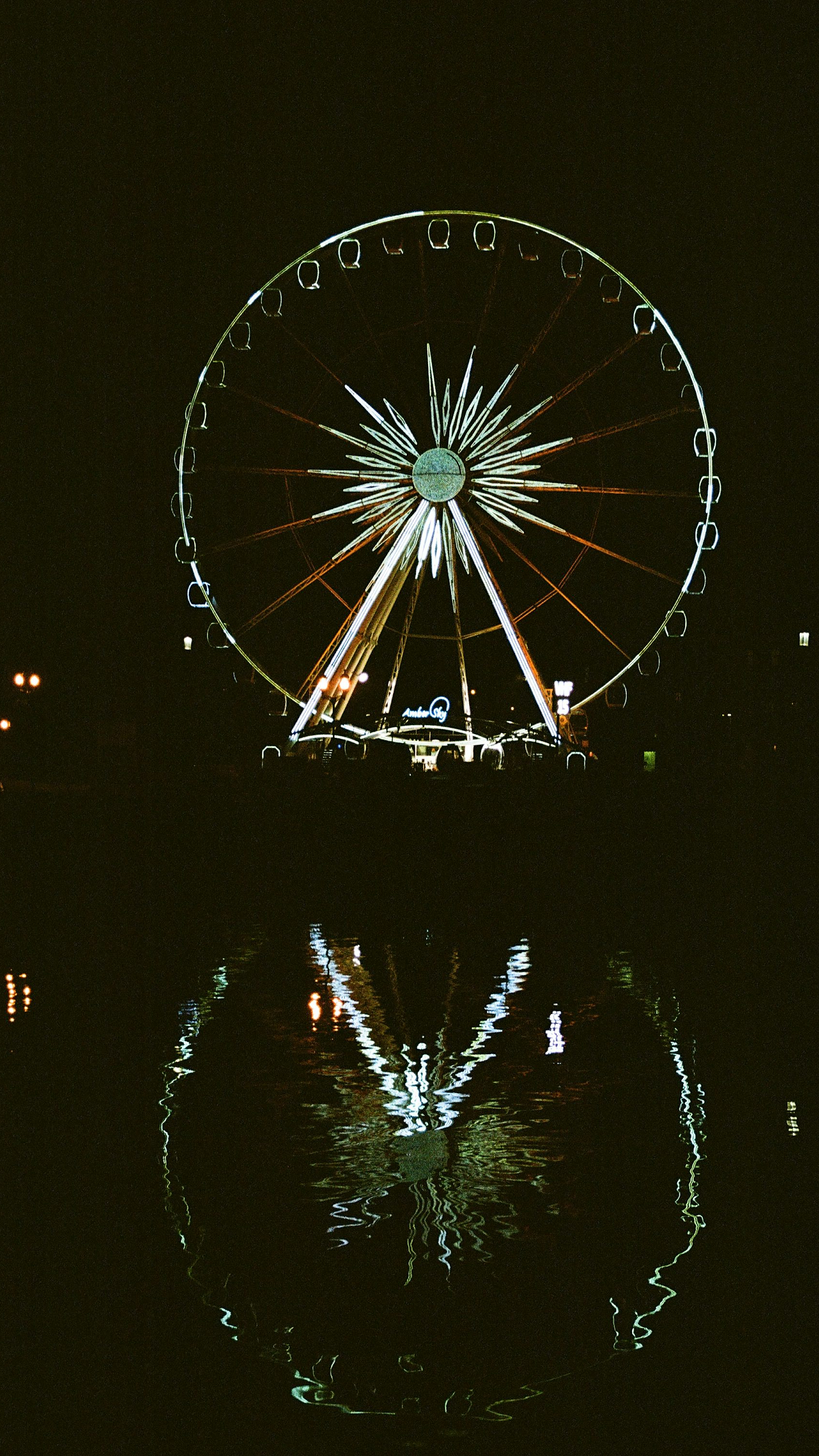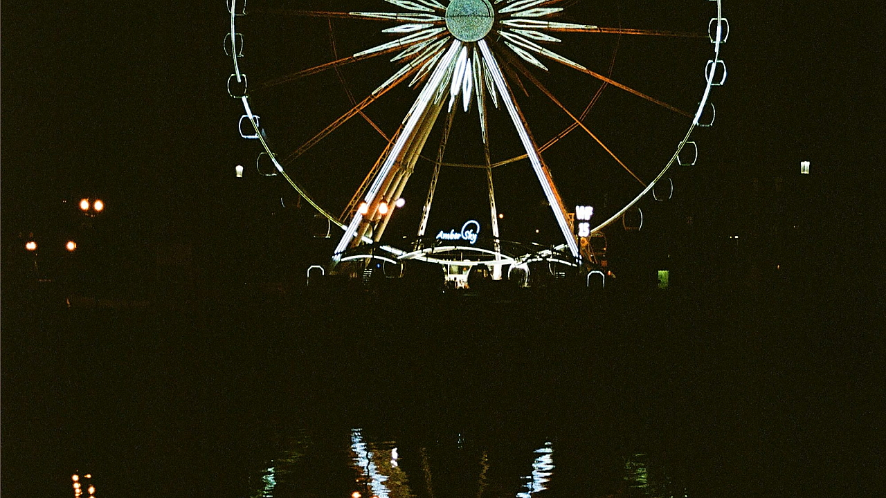 A stunning wallpaper featuring a white and blue ferris wheel against a vibrant backdrop. Perfect for adding a touch of whimsical charm to your device.