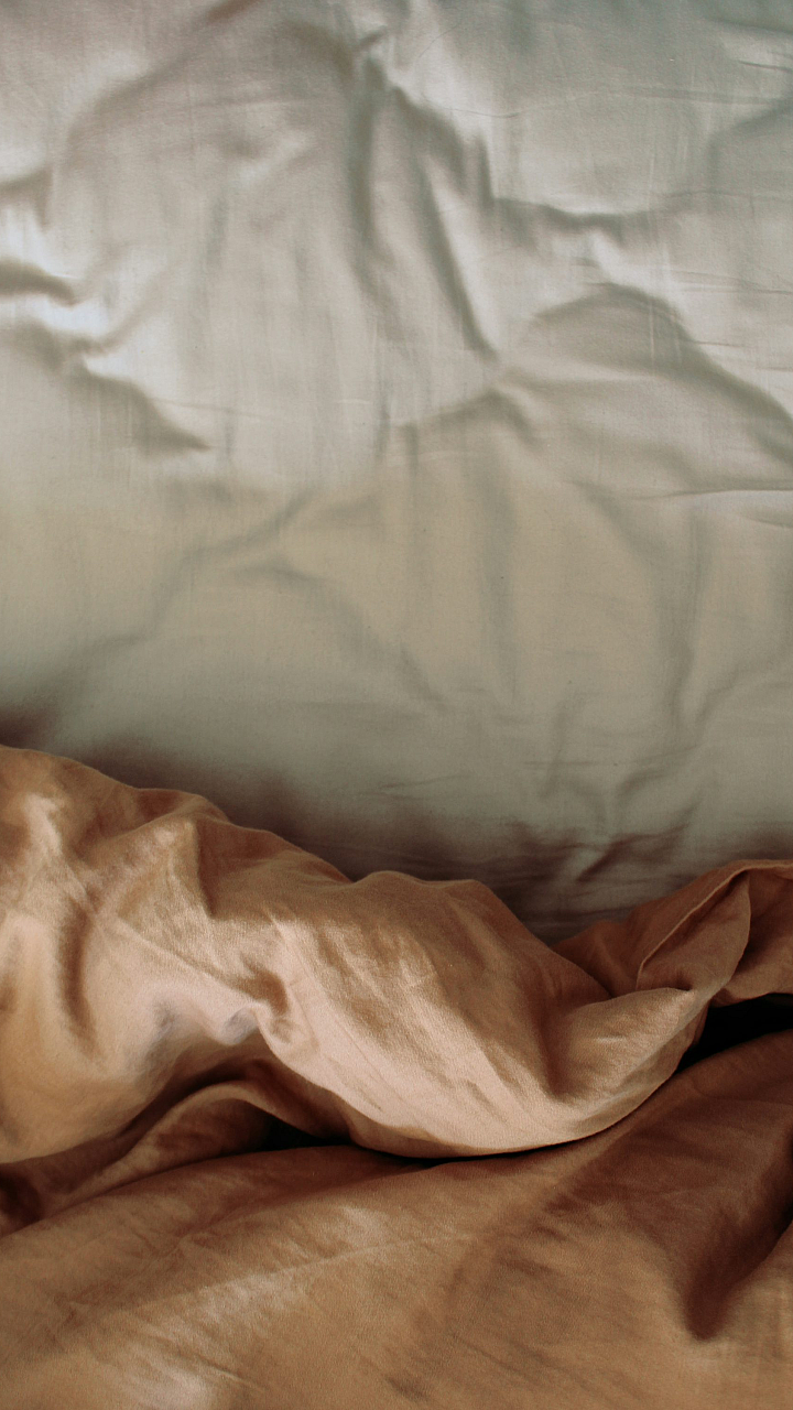 This wallpaper features a serene image of a white and brown bed comforter, perfect for adding a touch of calm and warmth to your digital space. It’s a simple yet elegant design.