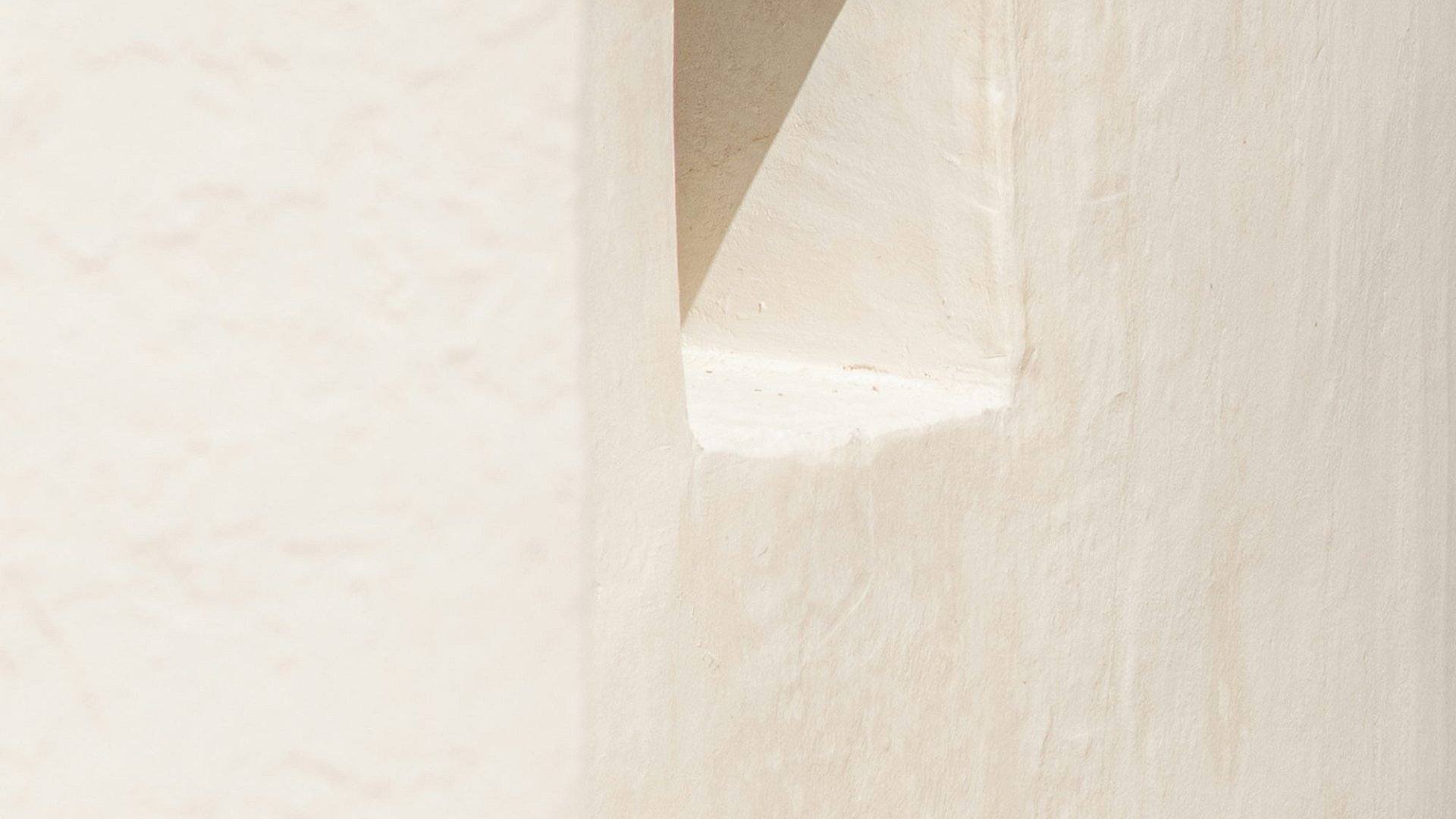 This wallpaper features a minimalist design of a white concrete wall with a single hole, offering a simple yet striking visual texture perfect as a background.